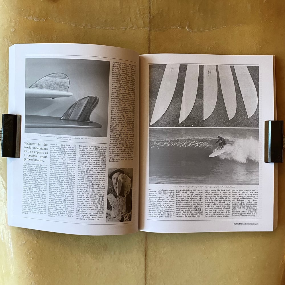 This book of 210 pages is an anthology compiling the 12 issues of the newspaper "Du Surf Situationniste" made during the year of 2025.