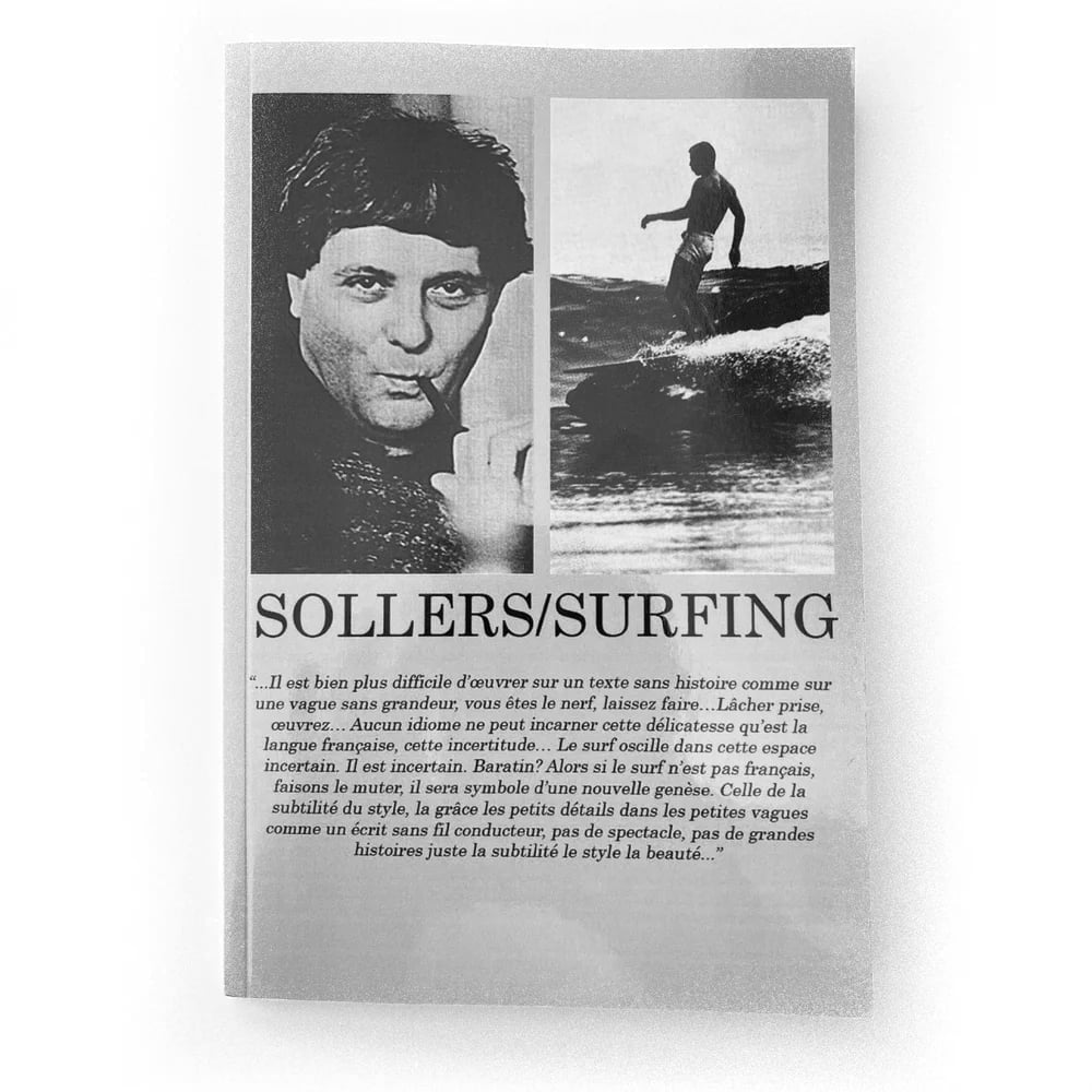 Sollers/Surfing est un essai de 80 pages ouvrant un parallèle entre la recherche stylistique présente dans la littérature de Philippe Sollers et l'esthétisme en surf. Il est question ici d'analyse et de sensibilité... Le surf comme langage unique et irréversible d'une tentative (échouée) d'émancipation...